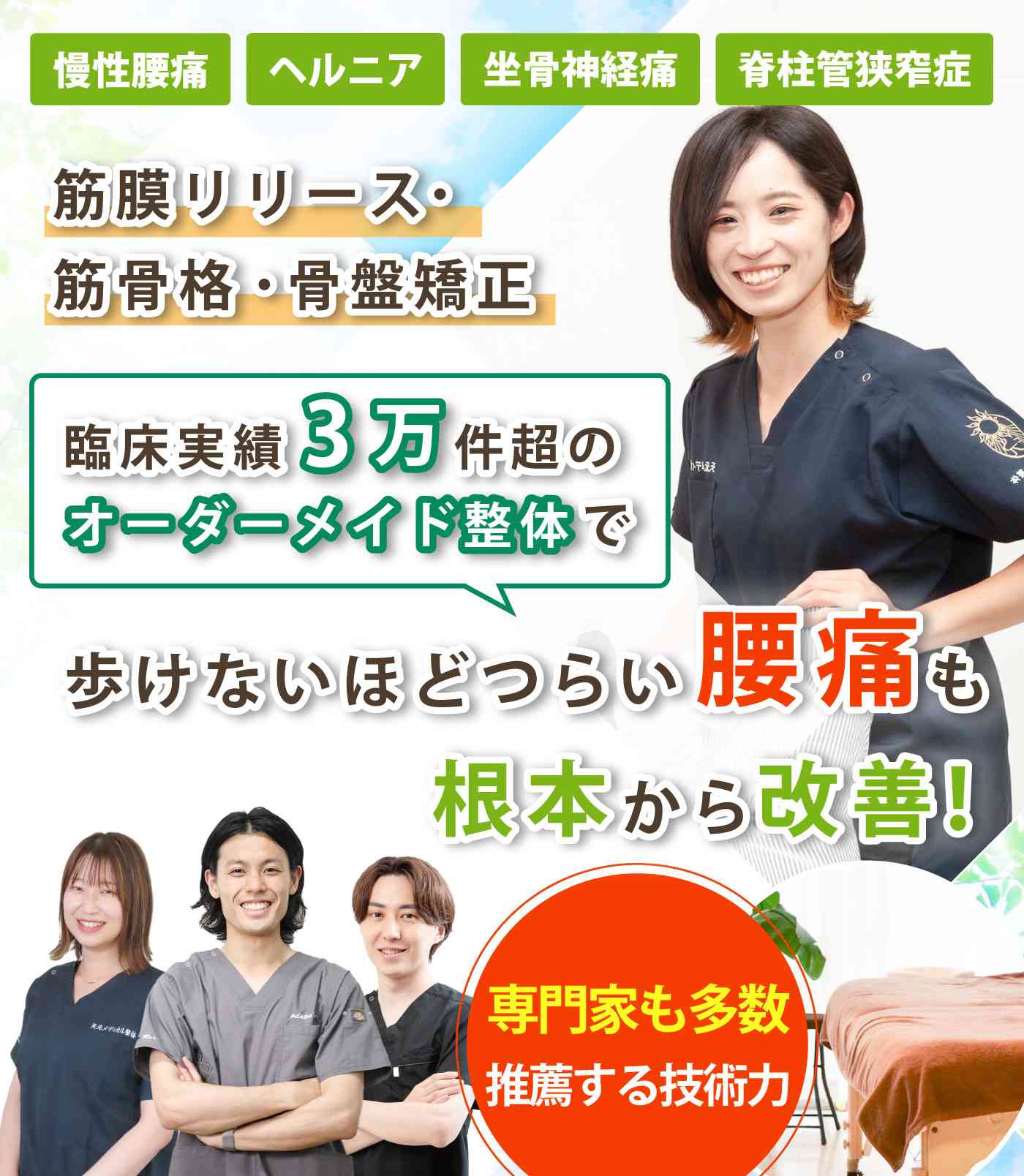 腰痛の専門家として、一人ひとりに寄り添った施術をします!